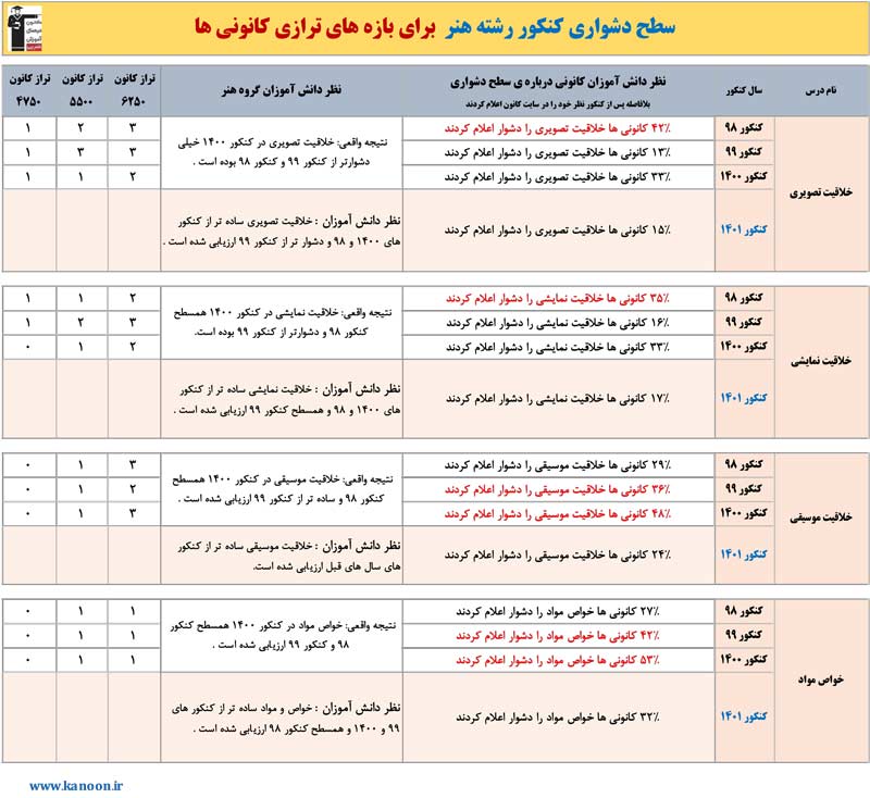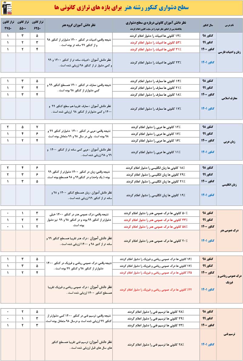 برای مشاهده نمودارهای سطح دشواری کنکور هنر 1401 کلیک کنید