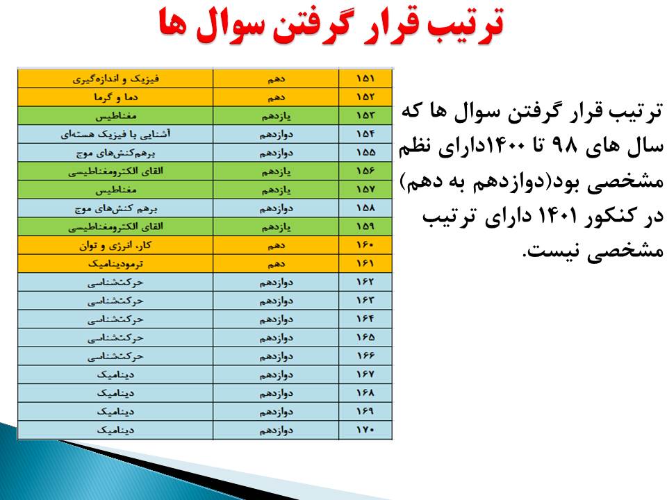 در مطلب زیر گرایشهای درس فیزیک کنکور ریاضی 1401- توسط آقای بابک اسلامی نوشته شده است