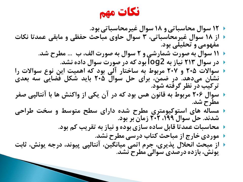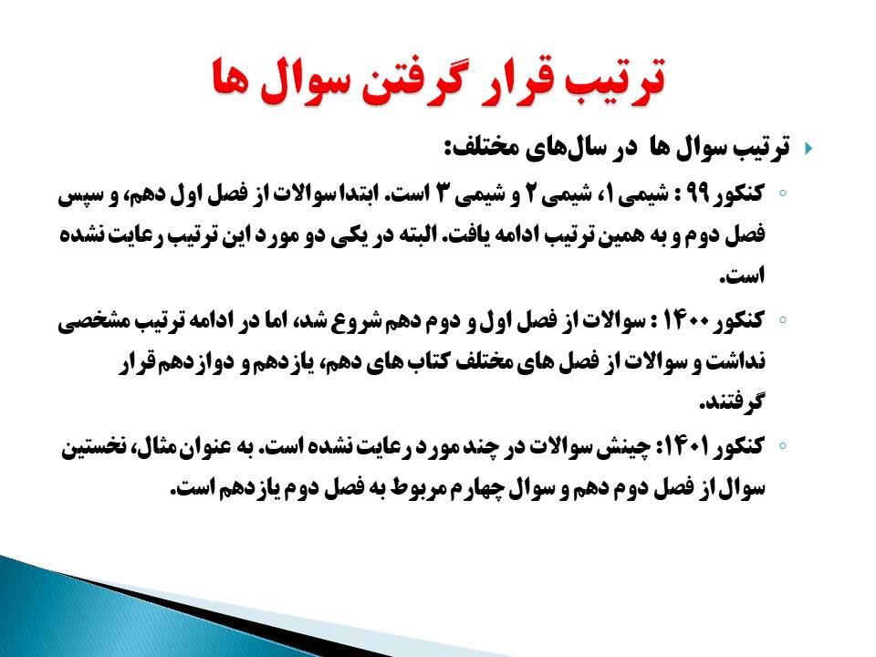 در مطلب زیر گرایشهای درس شیمی کنکور ریاضی 1401- محمدحسن محمدزاده مقدم- است