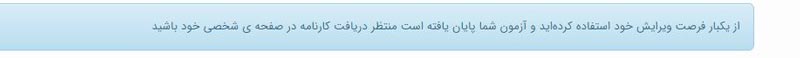 9-در پایان و پس از ویرایش پیغام زیر را مشاهده خواهید کرد. طبق زمان پردازش، منتظر دریافت کارنامه خود در صفحه شخصی باشید.