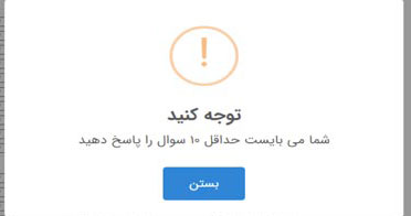 5-اگر دانش آموزی به کمتر از 10 سوال پاسخ داده باشد ، پیغام زیر را مشاهده می کند.