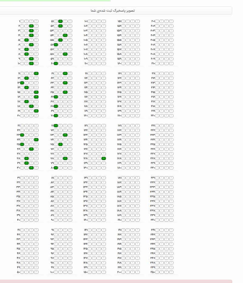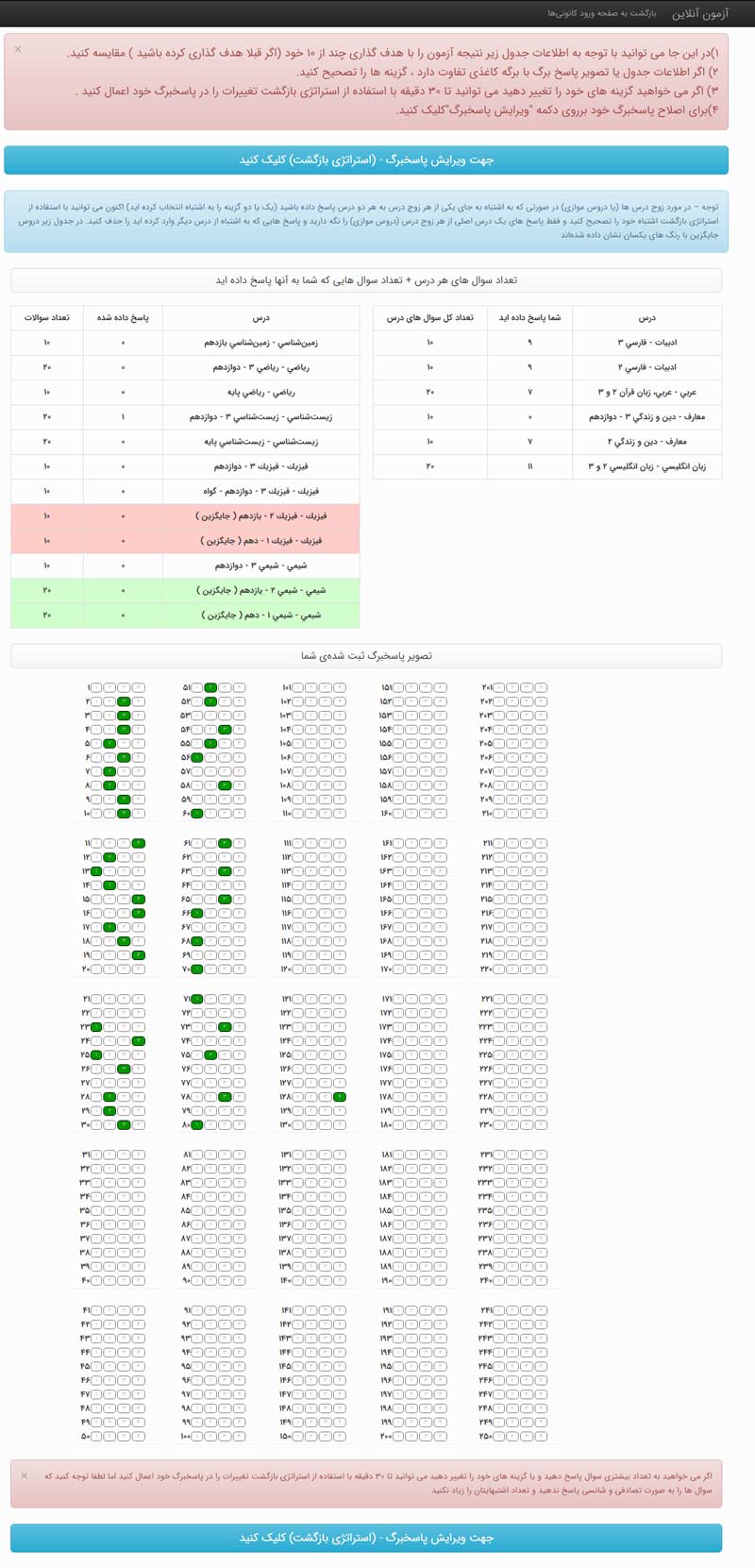 - ضمنا اگر اطلاعات جدول یا تصویر پاسخ برگ با برگه کاغذی تفاوت دارد یا خودتان تشخیص می دهید گزینه ای به اشتباه وارد شده یا اصلا وارد نشده ، گزینه های مورد نظر را تصحیح کنید.