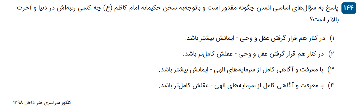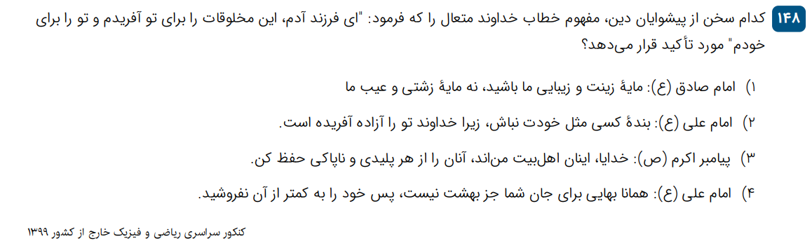 10 تست سری بیست و ششم از کل دینی و زندگی کنکور
