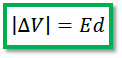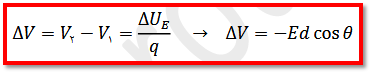 رابطه اختلاف پتانسیل دو نقطه و اندازه میدان الکتریکی یکنواخت: اندازه اختلاف پتانسیل الکتریکی در یک جابجایی داخل میدان الکتریکی یکنواخت از طریق رابطه مقابل بدست می آید: