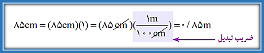 مثال: میخواهیم مقدار 85 سانتیمتر را بر حسب متر بنویسیم: