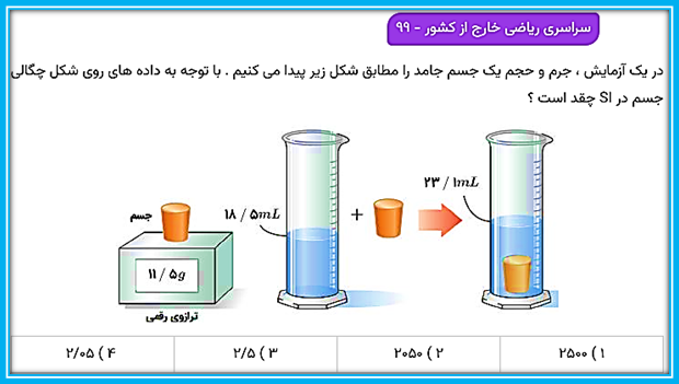 تعریف چگالی: نسبت جرم جسم به حجم آن را چگالی جسم می گویند که از رابطه زیر بدست میآید: