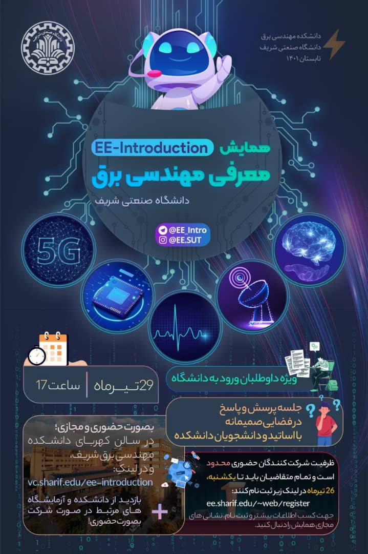 دانشکده مهندسی برق دانشگاه صنعتی شریف، جهت معرفی رشته مهندسی برق که یکی از رشته های جذاب، پیشرو در فناوری های نوین و با حوزه فعالیت بسیار متنوع و گسترده است، از دانش آموزان پر تلاش و علاقمند دعوت به عمل می آورد تا در همایش معرفی رشته مهندسی برق در تاریخ چهارشنبه 29 تیر ماه 1401 از ساعت 17 الی 19 در محل دانشکده مهندسی برق، سالن کهربا شرکت کنند.