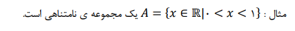 تعریف مجموعه متناهی : مجموعه ای که تعداد اعضای آن، برابر یک عدد حسابی باشد، مجموعه متناهی می نامیم و مجموعه ای که متناهی نباشد، نامتناهی است.
