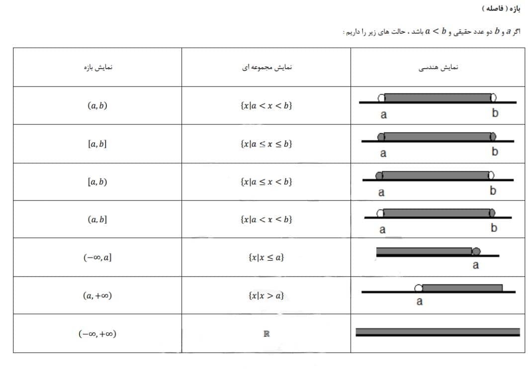 قوانین و حالت های مختلف بازه ها در ریاضیات :