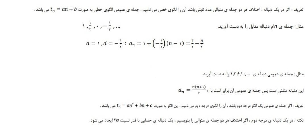درسنامه درس 1 ریاضی دهم - مجموعه ، الگو و دنباله