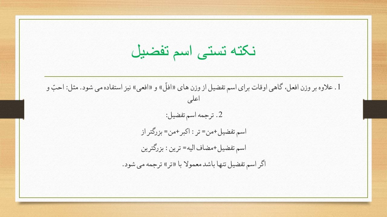 در این مطلب به بررسی جمع و جور قواعد درس یک عربی یازدهم یعنی اسم تقضیل و اسم مکان می پردازیم.