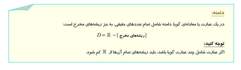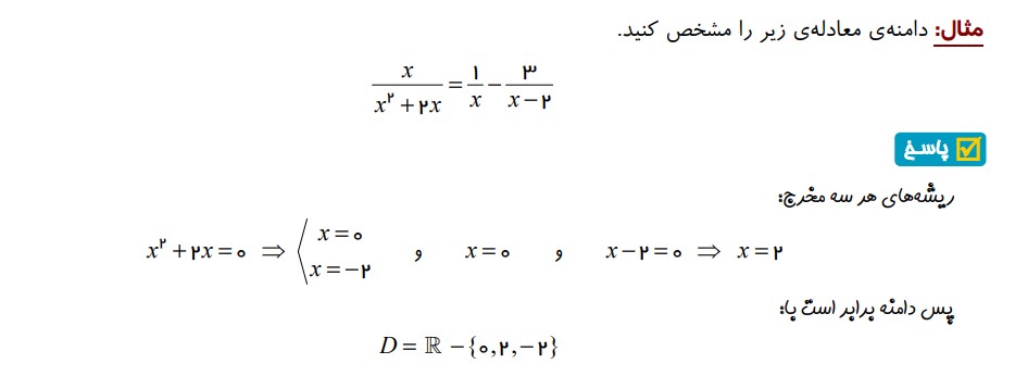 مثال 9 : ( تعیین دامنه یک معادله گویا )