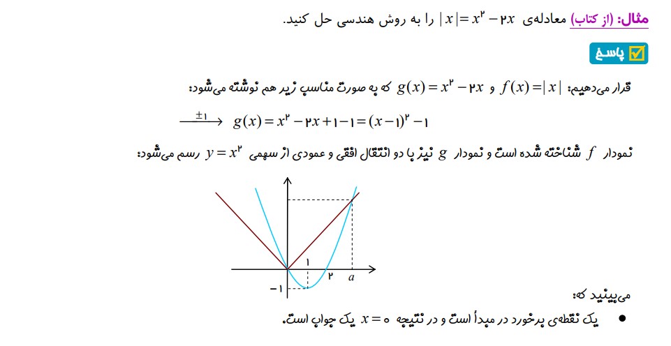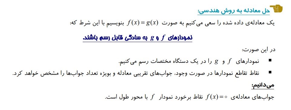 گاهی حل معادلات به روش جبری دشوار یا حتی غیر ممکن است، روش هندسی ممکن است سودمند باشد :