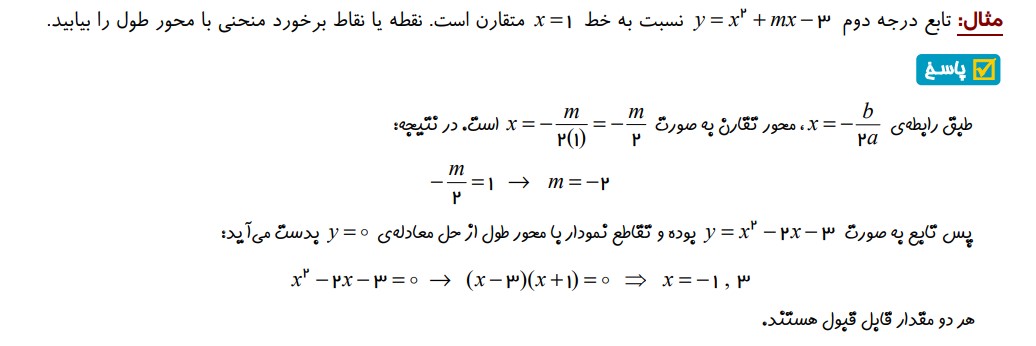 مثال 4 : ( توضیح مفهوم خط تقارن سهمی )