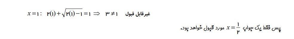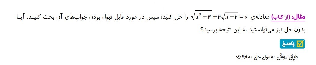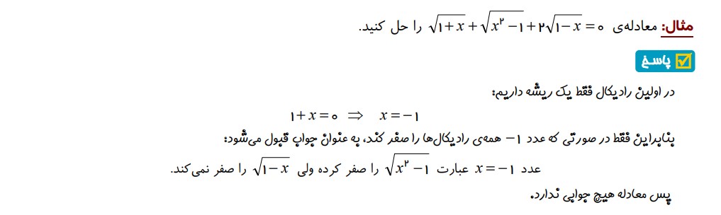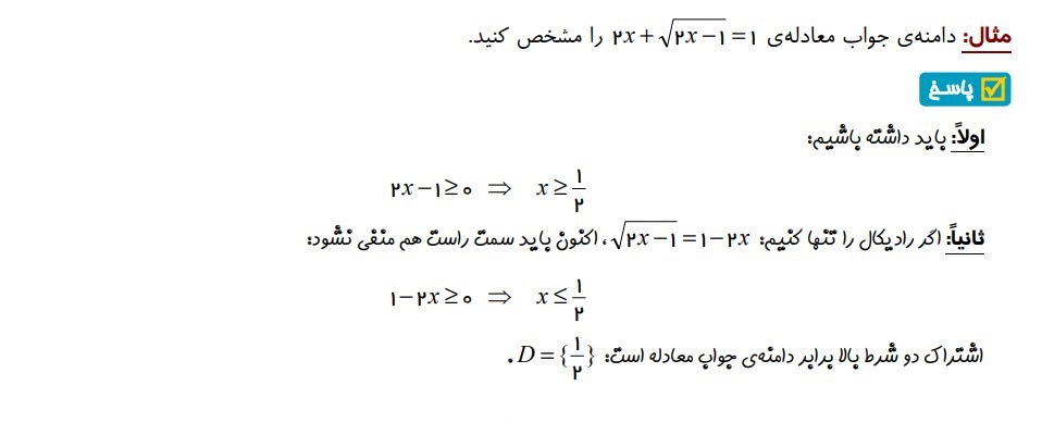 مثال 14 : ( بدست آوردن دامنه جواب معادله گویا )