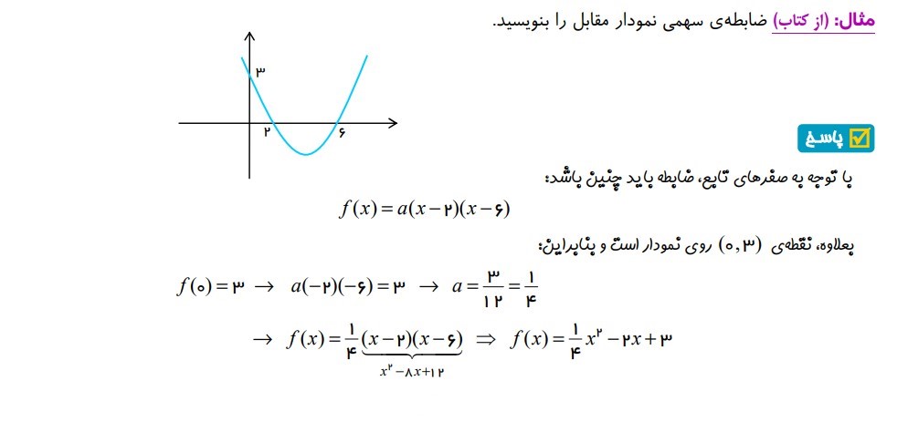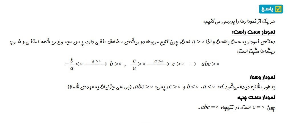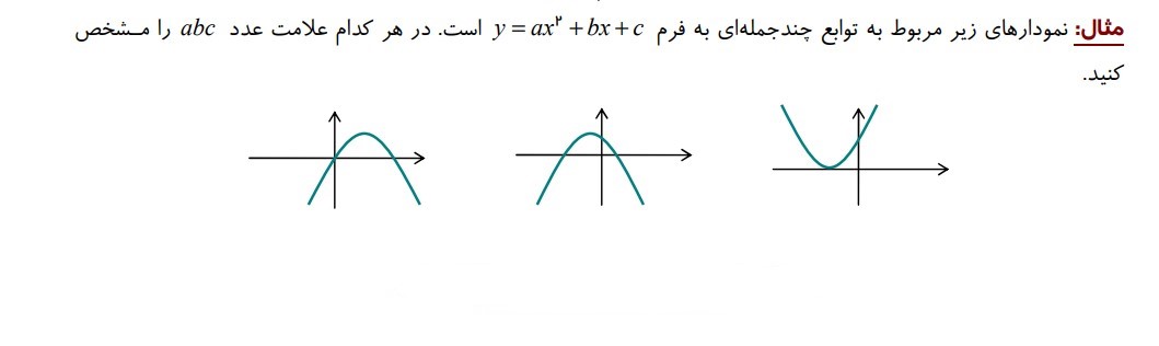 مثال 7 : ( تعیین علامت ضرایب نمودار سهمی براساس نمودار )