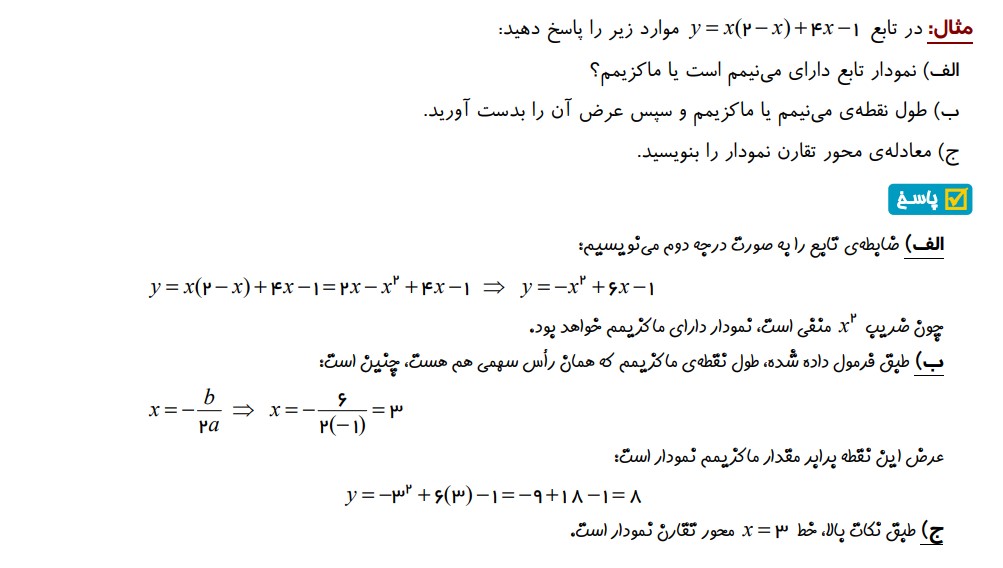 بخش 1 : نمودار تابع درجه دوم
