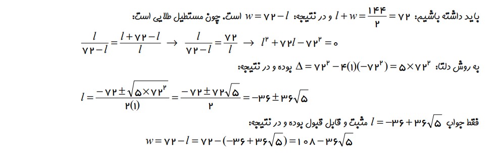 مثال 10 : ( حل با روش مستطیل طلایی )