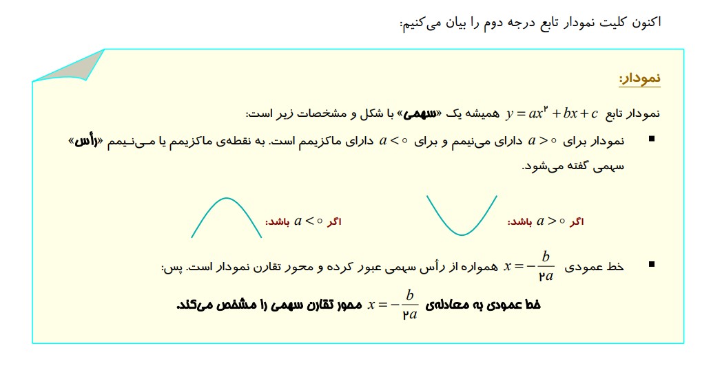 تعریف نمودار سهمی و ویژگی های آن :
