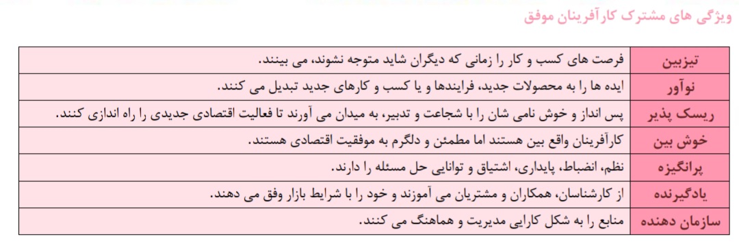 کارآفرین: کارآفرین کسی است که با نوآوری و خطرپذیری، محصولات جدیدی تولید و عرضه می کند یا راه های جدیدی برای تولید کشف می کند.