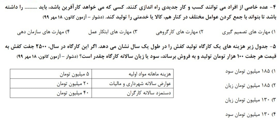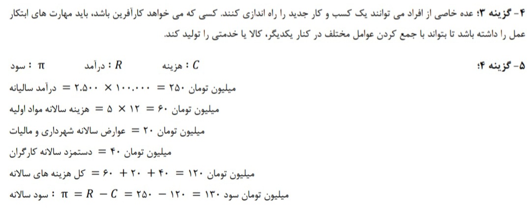 - یک کارآفرین موفق برای انتخاب صحیح و درست، باید هزینه ها و درآمدهایش را محاسبه کند.