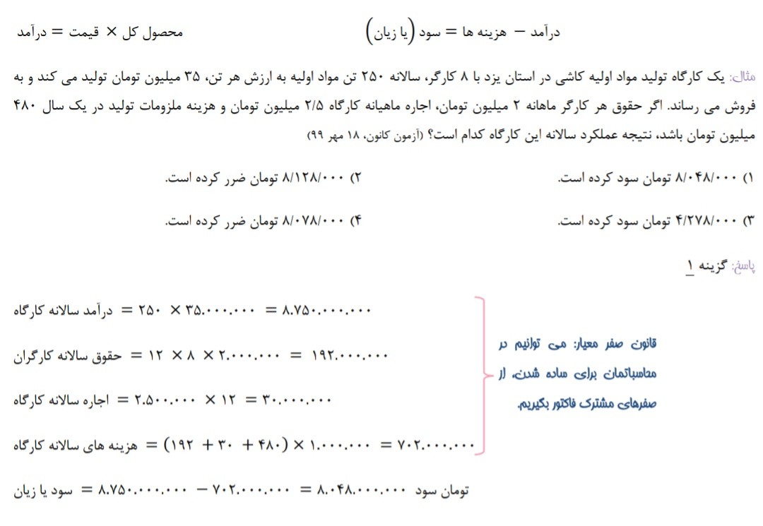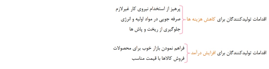 *اگر درآمدهای به دست آمده از هزینه های تولید کمتر باشد، کسب و کار شما دچار ضرر و زیان می شود. بنابراین تلاش می کنید با افزایش درآمد و کاهش هزینه ها از وضعیت زیان دوری کنید.