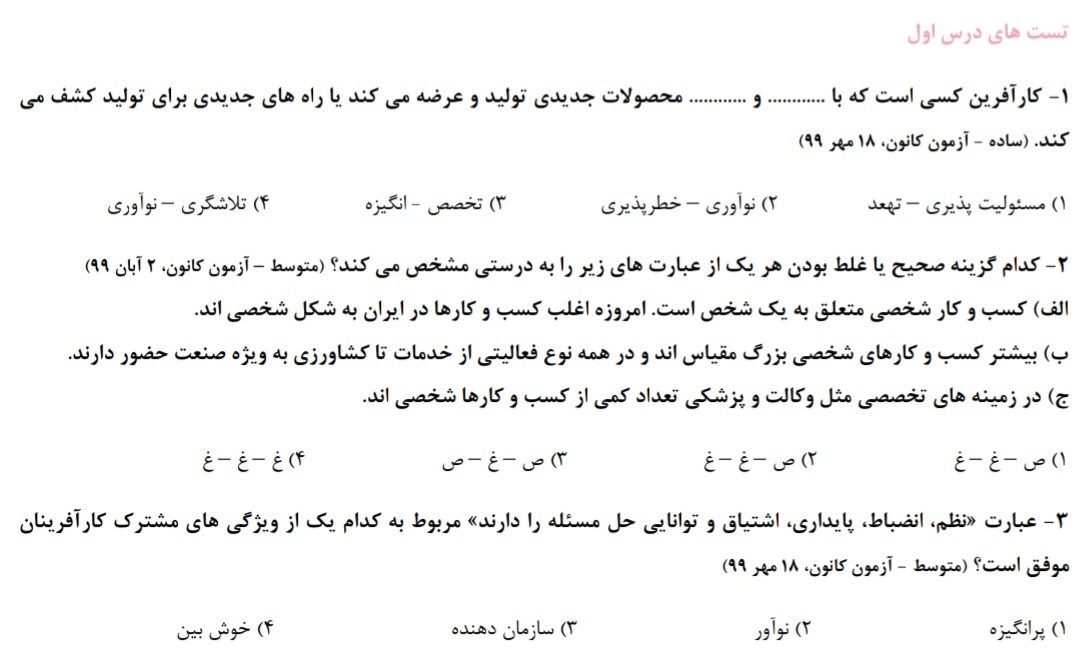 دوستان عزیز، حل تست بخش یک قدم فراتر به عهده شماست. در بخش کامنت ها منتظر پاسخ های شما هستیم؛)