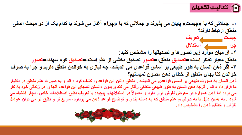 2)استفاده از منطق ، در همه علوم و فعالیت های ذهنی بشر گریزناپذیر است .