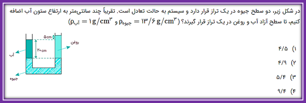 ب)فشار ارتفاع ستون مایع را برابر فشار ارتفاع ستون جیوه قرار دهیم.