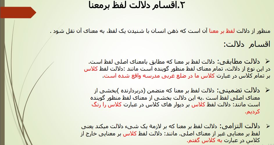 3)کلمات (( ماه – کوه – ماشین )) به ترتیب دلالت (( التزامی – مطابقی – تضمنی )) دارند .