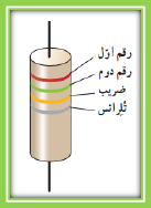 نحوه خواندن مقدار مقاومت ترکیبی از روی رنگ های روی آن : به شکل زیر توجه کنید، یک مقاومت ترکیبی است که چندین حلقه رنگی روی آن قرار دارد: