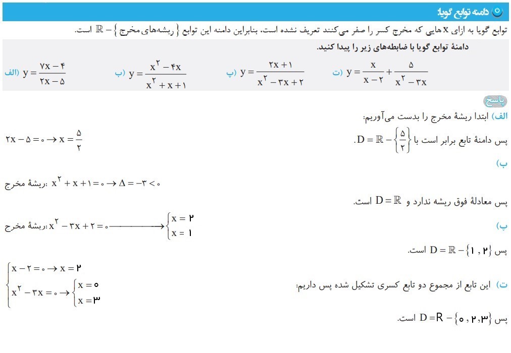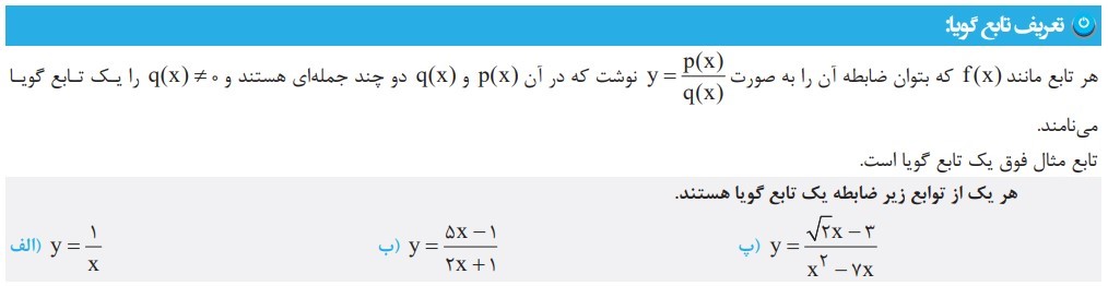 تعریف توابع گویا ( جاهای خالی موارد پ و ت را حتما خودتان روی کاغذ نوشته و پر کنید)