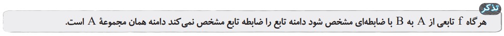 تذکر : ( در سوال های خاص دو حالت برای تشخیص دامنه تابع وجود دارد : 1) از روی مجموعه داده شده A و 2) از روی ضابطه تابع )