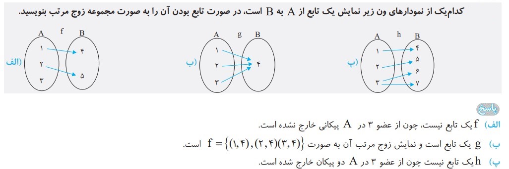 مثال 2 : در این مثال خواص تابع و حالات مجاز نمایش آن به صورت پیکانی رعایت شده است.(دقت کنید)