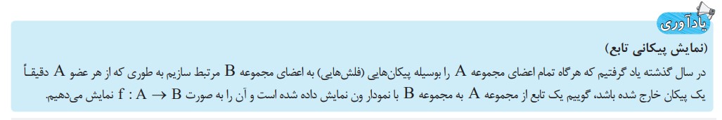 تذکر مهم : تمامی عضو هایی از B که با نوک پیکان مشخص شده اند، عضو مجموعه برد تابع هستند.