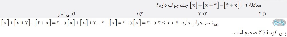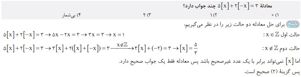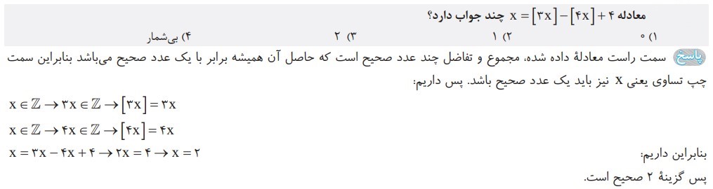 مثال 21 : حل معادله شامل جزء صحیح با استفاده از نتایج و نکات گفته شده