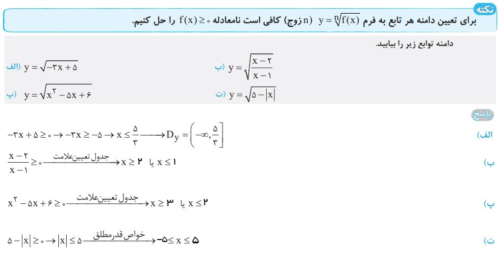 نکته و مثال 13 : تعیین دامنه رادیکالی