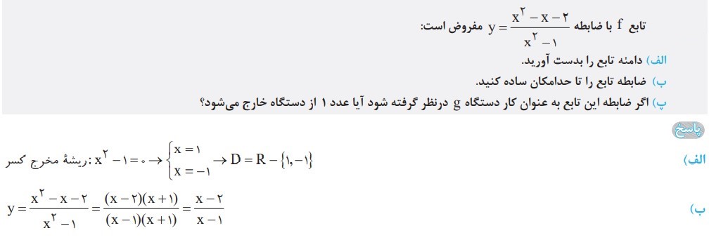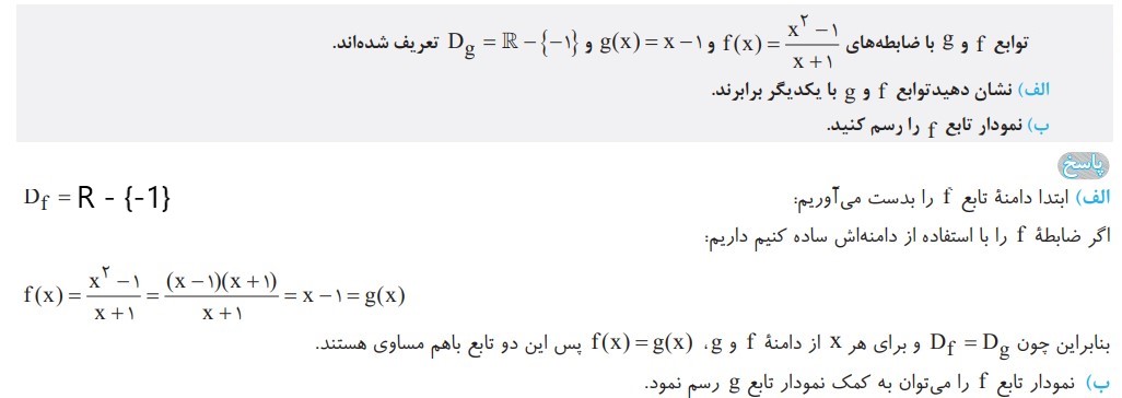 مثال 4 : ( دامنه یابی توابع گویا و برابری دو تابع و رسم تابع )