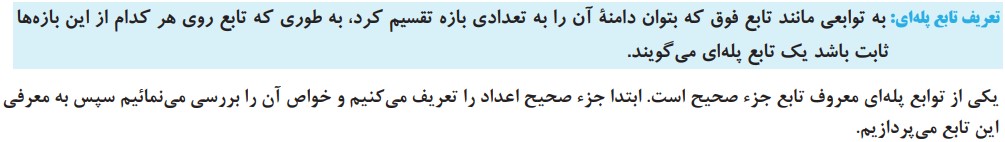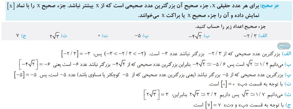 بعد از یادگیری مباحث اولیه درباره جزءصحیح ، میرسیم به تابع جزء صحیح و رسم آن
