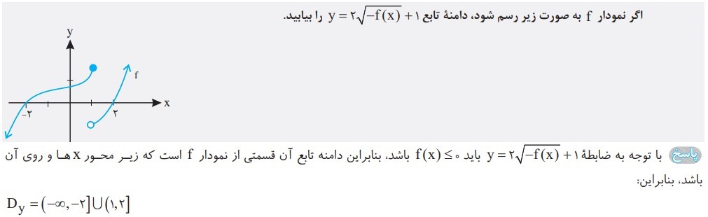 مثال 15 : تعیین دامنه تابع انتقال یافته از روی دامنه تابع اصلی