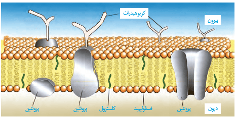 نکته: در هر دو لایه خارجی و داخلی غشای سلول های جانوری کلسترول وجود دارد. دقت کنید در غشای سلول های گیاهی کلسترول نداریم.