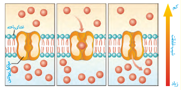 ۳) انتشار ساده - پروتئین های موجود در غشا، مواد را در جهت شیب غلظت عبور میدهند.