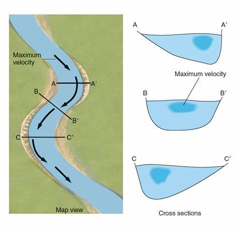 پیشتر گفتیم که وقتی قطرات آب در کف رودخانه جاری میشن، سرعت میگرین. اما افزایش شتاب بستگی به میزان خاک موجود در اون بخش رودخانه داره:
