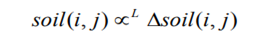 وقتی IWD از یه مسیر میگذره خاک موجود در اون مسیر رو میشوره و خاک جدید جایگزین اونای قبلی میشه. خاک تازه که با soil(i , j) نشون میدیم متناسب است با میزان خاکی که از بین رفته. خلاصه به زبون ریاضی یعنی Δsoil(i,j)= Δsoil(IWD):