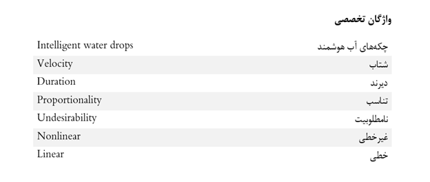 یک چکه آب هوشمند (IWD) تو مسافتهای محدود و جداگانه حرکت میکنه. یعنی شتاب IWD از نقطه i تا نقطه j به واسطه دلتای شتاب (Δvelocity) افزایش پیدا میکنه که این دلتا به طور غیر خطی متناسب است با معکوس مقدار خاک بین دو نقطه مذکور. یعنی هر چی اون یکی بیشتر باشه این یکی کمتر و بالعکس. فرمولشو ببنید قطعاً متوجه میشید قضیه از چه قراره: