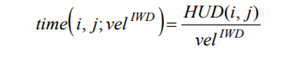حواستون باشه که ∝L به معنی تناسب خطی است. یه فرمول دیگهای که پایین آوردیم مقدار زمان مورد نیاز IWD رو برای حرکت از نقطه i به نقطه j با شتاب velIWD نشون میده: