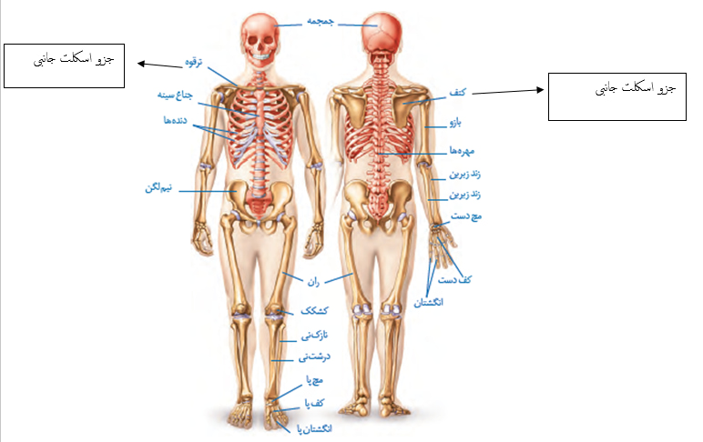 نکته:استخوان های کتف،ترقوه و لگن شامل اسکلت جانبی میباشند نه محوری.