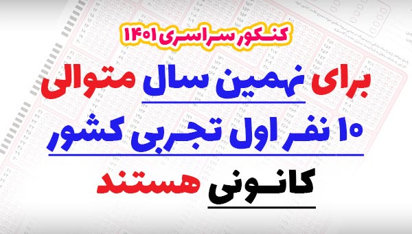 اسامی نفرات برتر کنکور 1401 ( رتبه های زیر 10 کنکور 1401) اعلام شد.