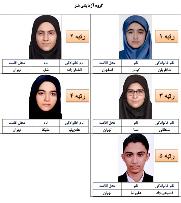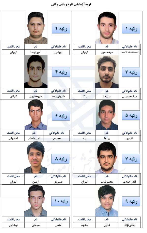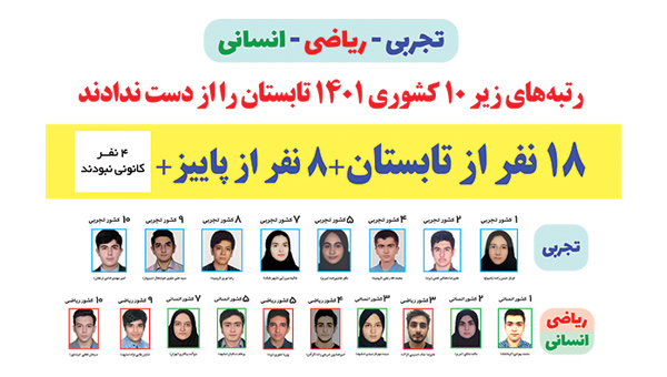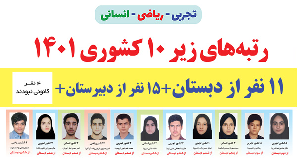 10 نفر برتر گروه آزمایشی علوم ریاضی و فنی 1401
