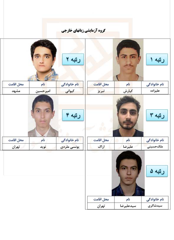 1- سیدحسین سیدمهدی جاسبی از تهران 10 آزمون کانون در سه سال ( دهم - یازدهم - دوازدهم )
